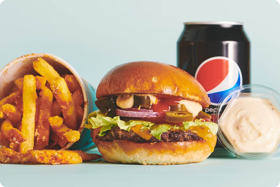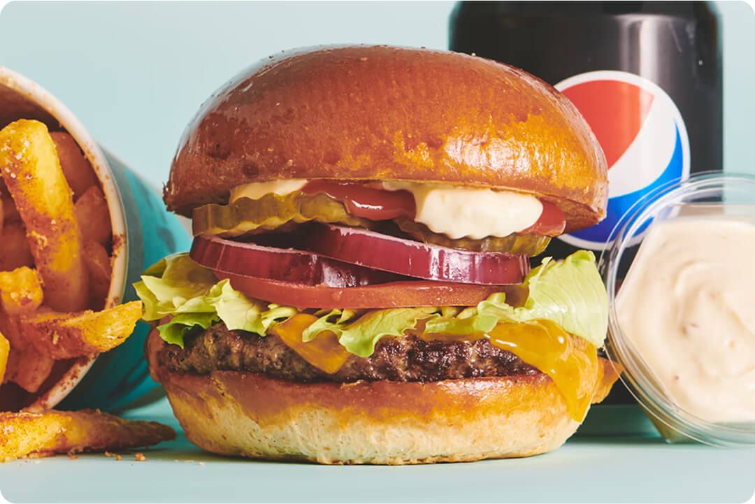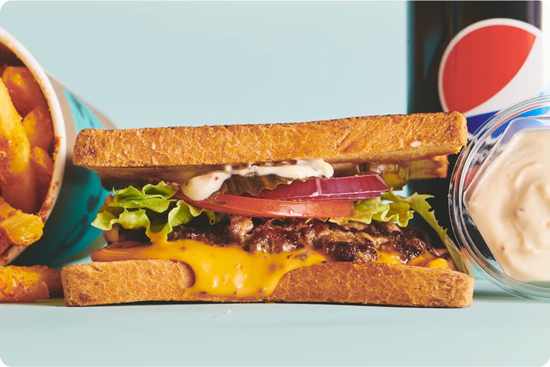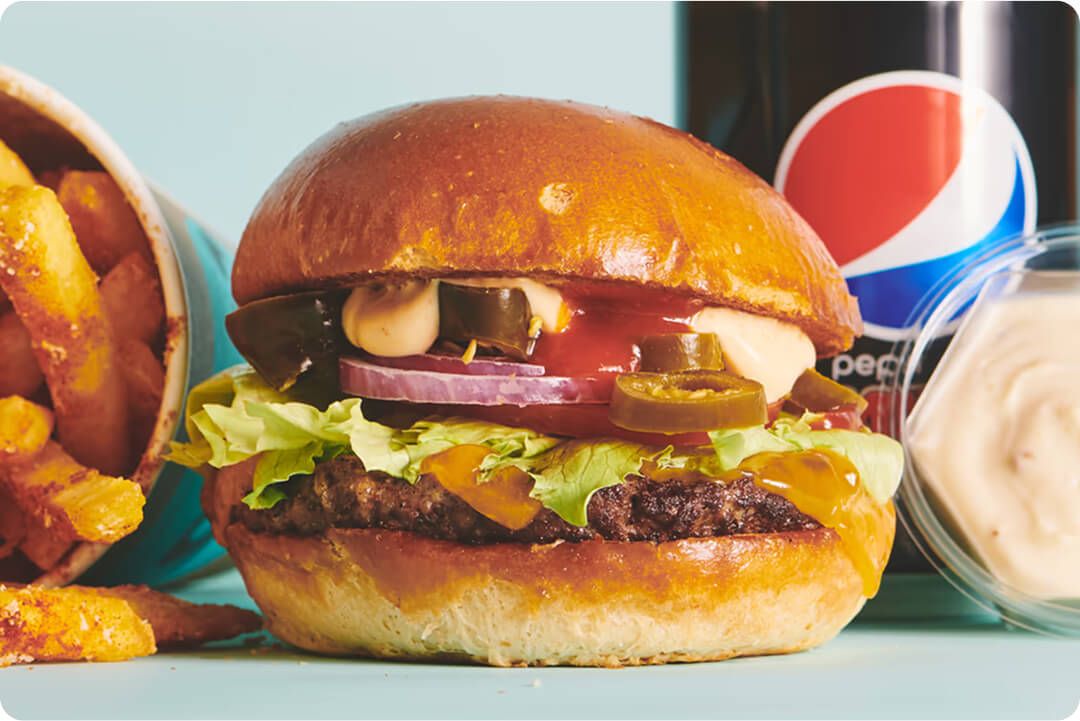 Prøv vores snaskede burgere og oplev det sure, det søde og det salte.